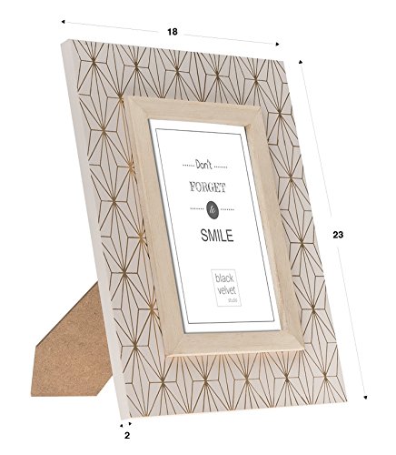 Black Velvet Studio Portafoto Copenhague MDF impiallacciato in madera paulonia, Colore Naturale, Grigio e Dorato. Stampato Geometrico a Rombi 23x18x2 cm.