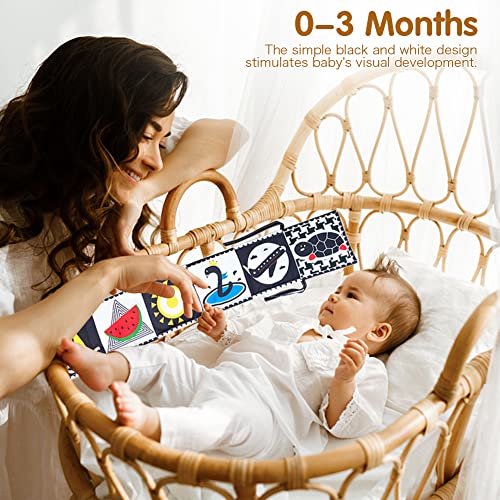 Black & White Libro di Stoffa con Motivo a Contrasto per Bambini, Libro in Tessuto, Libro Morbido per Bambini, Libro per Bambini, Libro di Immagini in Tessuto, Libro per Neonati, Giocattolo educativo