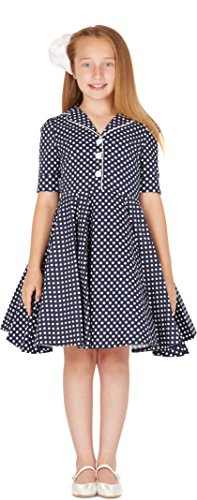 BlackButterfly Bambini Abito Vintage a Pois Anni '50 "Sabrina (Blu Mezzanotte, 13-14 Anni)