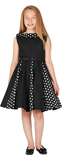 BlackButterfly Bambini Abito Vintage a Pois Anni '50 "Alexia (Nero, 7-8 Anni)