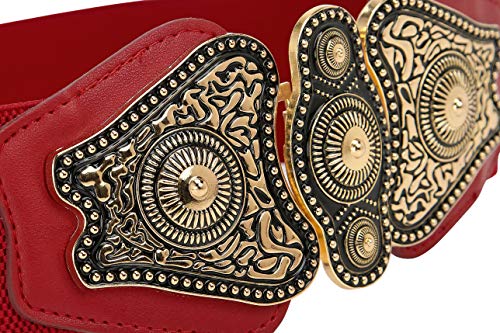 BlackButterfly Vintage Largo Elastico Allungare Antico Fibbia Cintura (Rosso, XL)