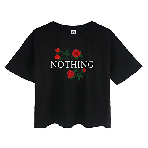 BLACKMYTH Donna Casual Cute Crop T-Shirt Manica Corta Cotton Graphic Tees Maglietta Nero Small