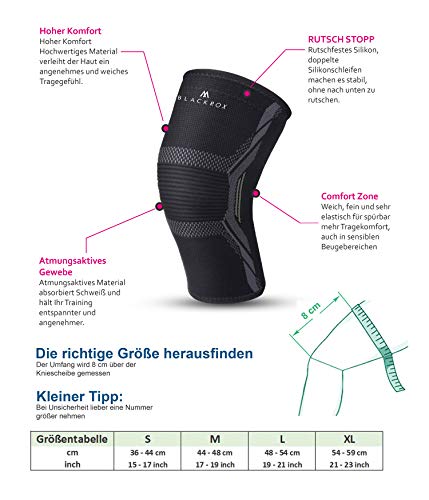 Blackrox Ginocchiera paragonabile per uomo e donna, ginocchiera a compressione Meniskus, ginocchia, ginocchiere sportive, calcio, jogging, traspirante, elastica, allevia il dolore