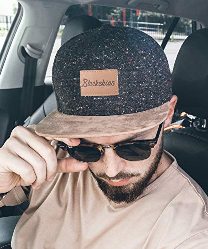 Blackskies Obsidian Snapback cap | Hat Berretto da Baseball Uomo Donna Cappello 5-Panel Lana Scamosciato Nero-Marrone