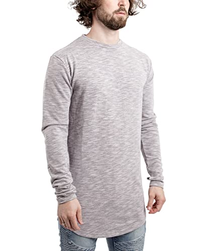 Blackskies Round Basic T-Shirt Maniche Lunghe | Uomo Fashion Maschile Rotonda Maglietta Lunga Oversize Longshirt - Grigio Macchiato Small S