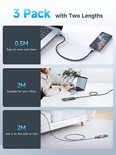 BLACKSYNCZE Cavo USB C [3Pezzi 0.5M+2M+2M] Cavo USB Type-C Ricarica Rapida Cavo Tipo C Nylon Cavo USB A a USB C per Samsung Galaxy S23 S22 S21 S20 S10 A71 A51 Note 20 10, Huawei P50 P40 P30, Pixel 7