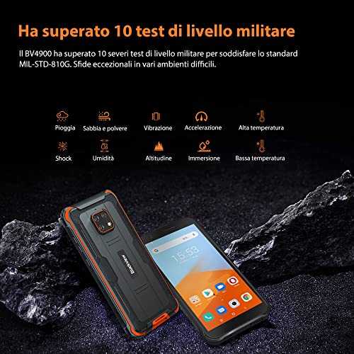 Blackview BV4900 Rugged Smartphone, 4G Android 10 Cellulare Antiurto, 5580mAh 5.7" HD, 3GB+32GB Telefono impermeabile, NFC Face ID GPS Smartphone robusto sbloccato (arancia)