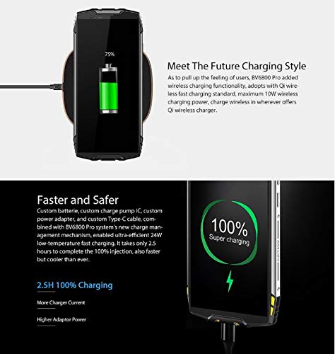 Batteria da 6580 mAh BAK: BV600 è equipaggiato con una batteria da 4500 mAh, con una autonomia straordinaria. La caratteristica migliore di BV6800 Pro è che è equipaggiato con una batteria ancora più grande da 6580 mAh, agli ioni di litio, che ti offre un'autonomia di 4 giorni affidabile. (Batteria da 6580mAh BAK / 50H di chiamate / 24H di video / 18H di navigazione continua / 12 di gaming continuo)-24W Ricarica più sicura e veloce. Impiega solo 2.5 ore per ricaricarsi completamente,--
