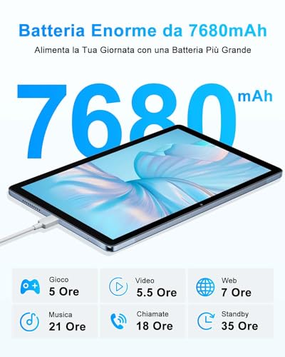 Blackview Tab 80 Tablet 10 Pollici, Tablet Android 13 16GB RAM+128GB ROM(TF 1TB), 4G LTE+5G WiFi, Octa-Core, 1280x800, 13MP+8MP, 7680mAh/Type-C/GPS/OTG/Face ID/Widevine L1, Blu