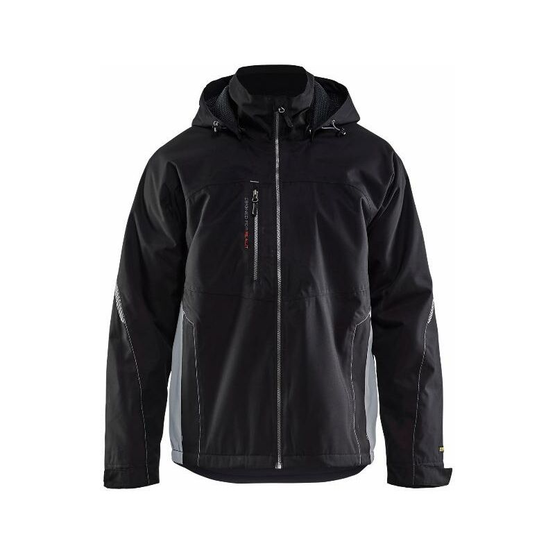 Dettagli: 100% poliestere oxford laminato, impermeabile 15000mm, antivento, traspirante 4000g/m²/24h, Ret 8.5, 200 g/m². Fodera in rete Materiale traspirante antivento e impermeabile, cuciture nastrate Cappuccio rimovibile e regolabile, cappuccio rimovibile con fodera in rete Etichetta tessuta sulla tasca posteriore Stampa sul petto Zip unidirezionale in plastica Tasca sul petto con cerniera Tasche anteriori con cerniera Tasca interna con zip Orlo regolabile con coulisse Polsino interno alla manica con foro per il pollice, estremità della manica regolabile Stampa riflettente su maniche e cappuccio Nero/grigio chiaro4XL