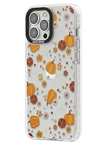Blanc Space Halloween zucche e fiori Impact Phone Case per iPhone 14 Pro Max | Protettivo doppio strato Bumper TPU Cover Pattern Stampato | Spettrale Arancione Pattern Carino Cartoon