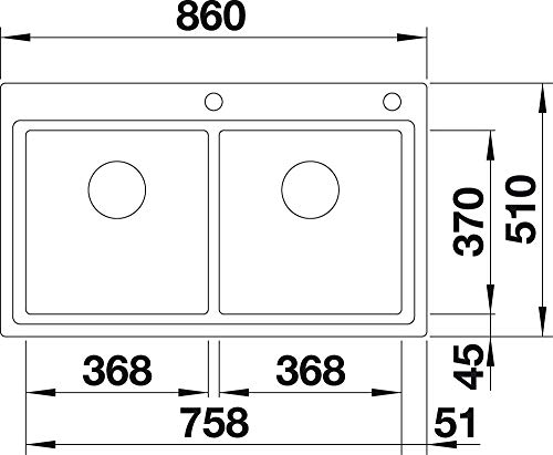 Dimensioni esterne: 860 x 510 mm - Profondità contenitore: 195 + 195 mm - Larghezza minima mobile: 80 cm - Ritaglio: 840 x 490 mm;