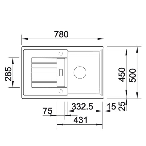 Istruzioni di montaggio: la vasca è reversibile e può essere installata a sinistra o a destra del gocciolatoio - Fori prefissati per il raccordo
