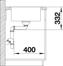 completo di piletta con filtro a cestello da 3 1/2” e sifone con bypass lavastoviglie