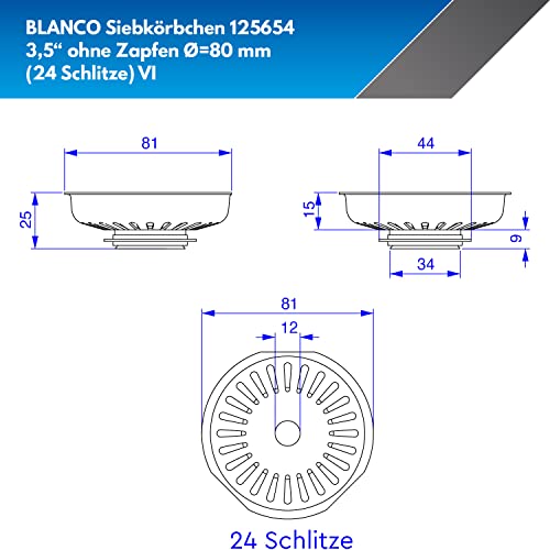 BLANCO - Cestello per lavello da 3,5" senza perni D = 82 VI