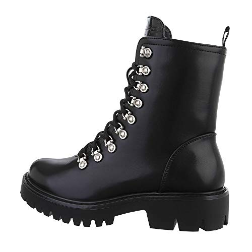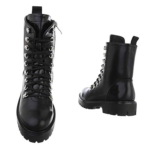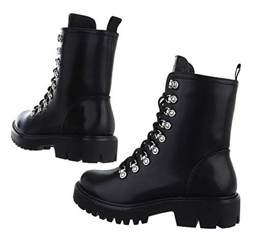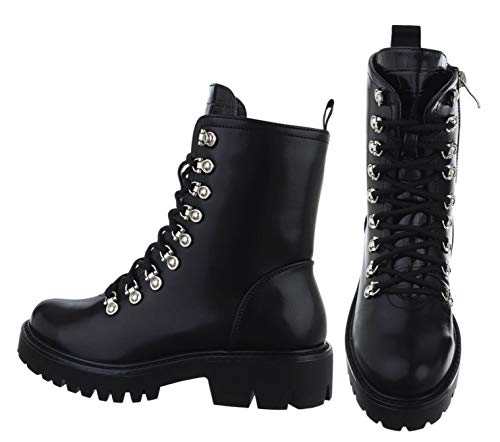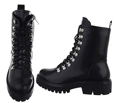 Blanco Store - Anfibi Donna Scarponcini Stivali Alti Militari Neri con Lacci Stivaletti Boots (Nero, Numeric_40)