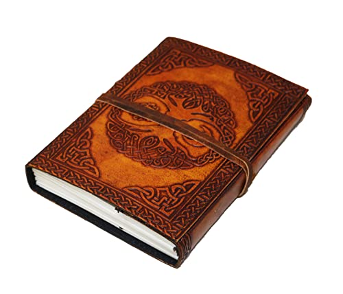 ✔ FASCINO RUSTICO: copertina in pelle splendidamente goffrata con rilegatura in pelle copta cucita a mano che fissa saldamente le pagine. Questo diario dei personaggi vecchio stile ha una classica chiusura con cordino in pelle che mantiene efficacemente il tuo diario chiuso e funge anche da pratico segnalibro.