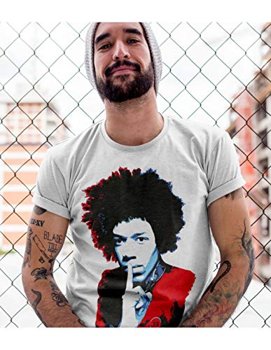 Blasfemus T-Shirt Uomo - Jimi Hendrix, M, Bianco, Cotone Jersey