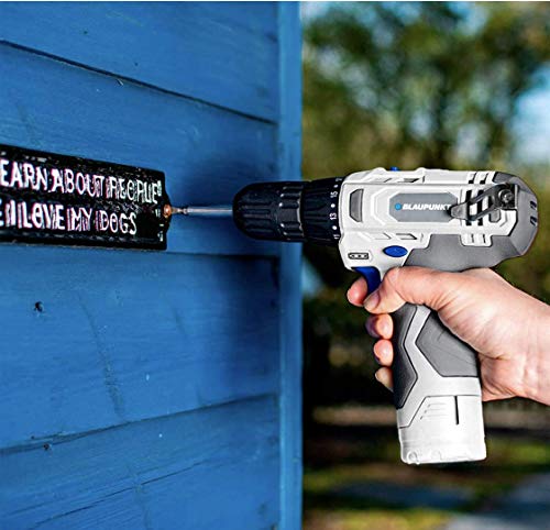 Blaupunkt CD4000 - Trapano combinato compatto senza fili, batteria agli ioni di litio da 12 V 1,5 Ah - Mandrino senza chiave da 10 mm - Funzioni trapano a percussione e cacciavite