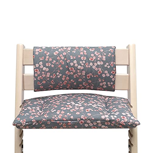 Blausberg Baby - Cuscini Tripp Trapp Junior per Stokke Tripp Trapp (Grigio con foglie Rosa) senza fessura nel cuscino del sedile - tutti i materiali certificati OEKO-TEX® Standard 100