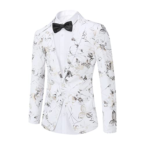 Blazer Floreale per Uomo Slim Fit Elegante Giacca da Abito Moda Stampe Vestito Giacche