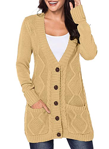 BLENCOT Maglione Lungo Donna Invernale Cardigan Design a Trecce Cardigan Scollo a V Chiusura a Bottoni Cardigan Lungo Donna Maglione Ragazza Women Beige XL