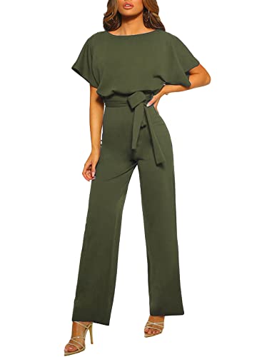 BLENCOT Tute Donna Eleganti Tuta da Donna Manica Corta Verde Jumpsuit Festa Nozze Tailleur Pantalone Monopezzi e Tutine da Donna Estate Pagliaccetto Straight Leg Tutina con Cinghia Molla Autunno S