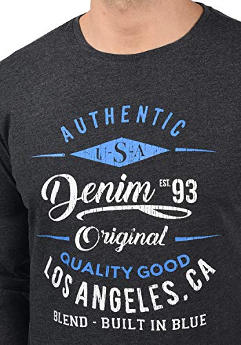 BLEND Dopper Maglietta A Manica Lunga Top Stampato da Uomo Taschino, Taglia:M, Colore:Charcoal (70818)