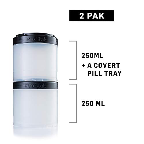 BlenderBottle ProStak Expansion Pak Sistema con 2 Contenitori, Incluso 1 Scomparto per Pillole, Unisex - Adulto, Nero/Trasparente, 2 x 250 ml