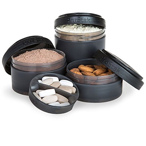 Da utilizzare come sistema indipendente o per aumentare la capacità del BlenderBottle ProStak mediante tre contenitori aggiuntivi e uno scomparto per pillole Twist n' Lock
