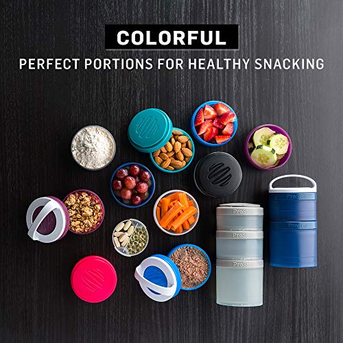 Da utilizzare come sistema indipendente o per aumentare la capacità del BlenderBottle ProStak mediante tre contenitori aggiuntivi e uno scomparto per pillole Twist n' Lock