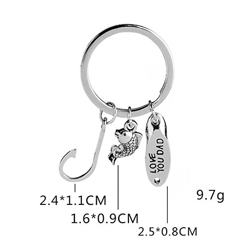 Blerameng Portachiavi in lega con scritta "I love you Dad", idea regalo per la festa del papà, con ciondoli a forma di amo e di pesce