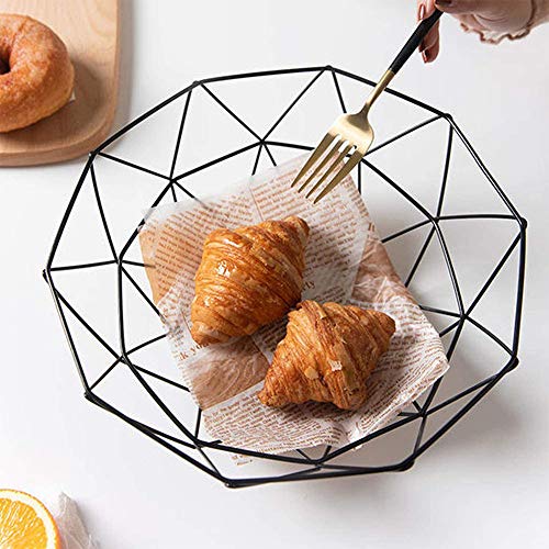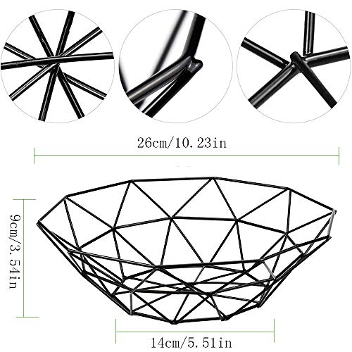 Bless 2 Pezziciotole di Frutta Geometriche, Cesto di Frutta Geometrico Vintage, Fruttiera in Metallo, per Riporre Frutta da Tavolo, Verdura, Pane, Cosmetici, Articoli da Toeletta e Asciugamani (Nero)