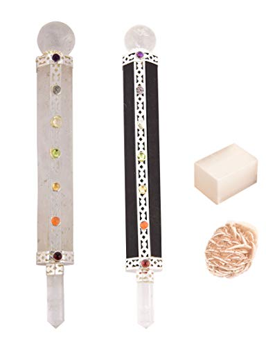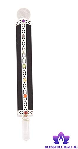 Blessfull Guarigione 7 Chakra Tormalina nera, Bacchetta di quarzo di cristallo Bacchette di cristallo di Reiki Bilanciamento del Feng Shui Regalo spirituale Con Selenite Di Rose Desert/Selenite Cubo