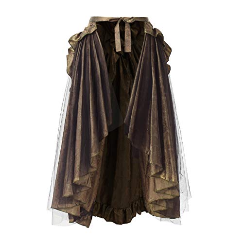 BLESSUME Donne Annata Gotico Steampunk Pizzo Chiffon Broccato Gonne Mantellina Balza Trambusto (Marrone)