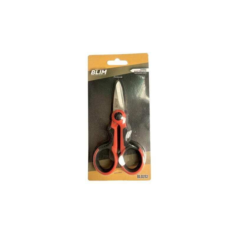 Blim Forbici da elettricista 14 cm. Design robusto per tagliare fili morbidi, materiali isolanti, nastro adesivo, fascette e molti altri materiali. -Lame in acciaio inox micro-seghettate con bordo di taglio concavo per un'auto-affilatura e prestazioni di taglio superior - Incorpora una tacca di taglio per spellare efficacemente cavi e fili. -Lunghezza: 140 mm.