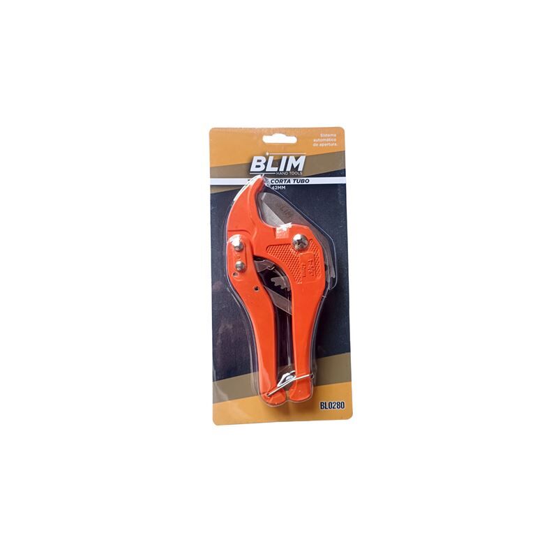 Blim Tagliatubi 42 mm. -Avanzamento progressivo della lama per uno sforzo minimo e un taglio veloce. -Lama in acciaio con corpo in carbonio laminato a caldo. -Sistema di apertura automatica. -Per tagliare tubi in PVC, CPVC, PPR, PEX, POLY, PE e gomma. -Taglio: 42 mm.
