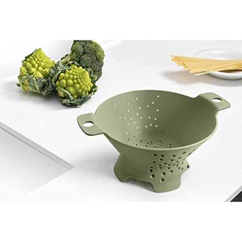 Blim Plus Scolapasta Cosmo diametro 25cm verde opaco (Forest) in plastica 100% riciclabile, Non Tossico, Lavabile in Lavastoviglie, Impugnatura Ergonomica, 4 piedini d'appoggio, fori svasati