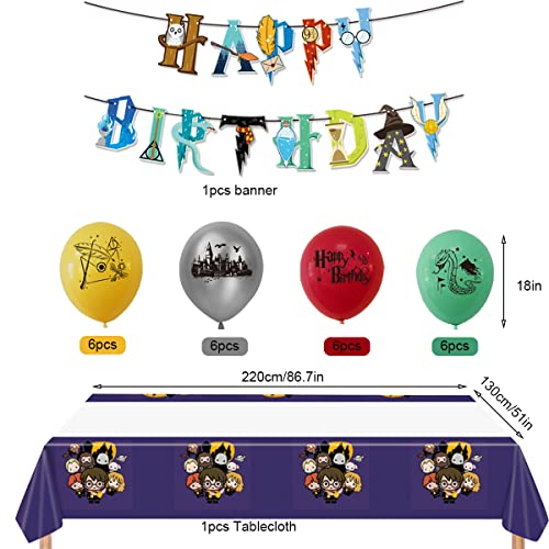 BlinBlin Set di Forniture per Feste di Compleanno Mago per Hary Pot, 16 Ospiti Piatti Tavola, 9¾ Decorazioni Tavola per Feste Magiche Mago, Tovaglia, Banner Palloncini, Piatti Tazze Tovaglioli
