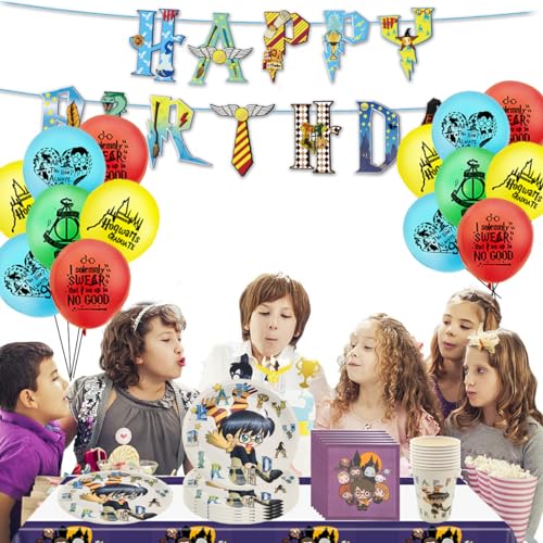 BlinBlin Stoviglie per Feste per Il Compleanno di Har Pot, Piatti per Feste a Tema HP, Decorazione a Tema Mago Magico 9¾, tovaglia, Palloncini per striscioni, Articoli per Feste per 16 Ospiti