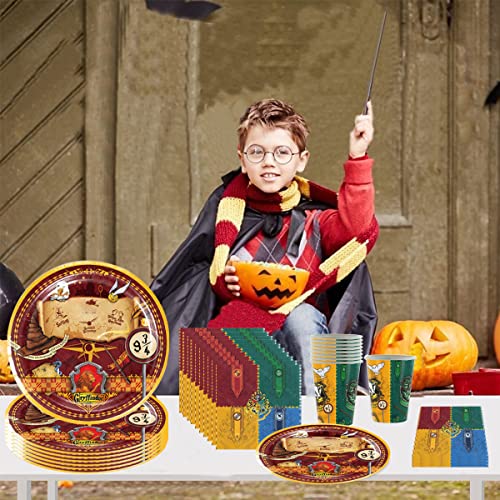 BlinBlin Stoviglie magiche adatte per feste Hary Pot, set di stoviglie per feste a tema, piatti, tovaglioli, decorazioni magiche di compleanno, per 20 ospiti