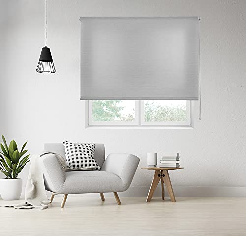Blindecor Ara Premium | Tenda traslucida tinta unita di alta qualità - Argento grigio, 190 x 190 cm (Larghezza x Altezza) | Dimensioni del tessuto 187 x 185 cm - Tenda avvolgibile qualità premium