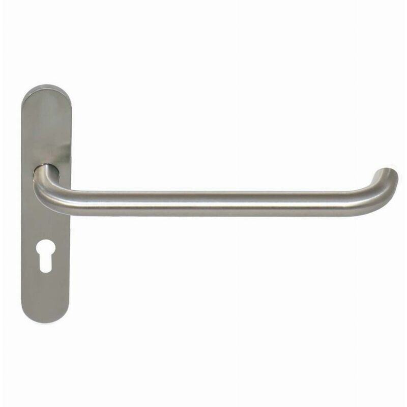 Dettagli: Maniglia lunga 325 mm Molla di ritorno rinforzata Su piastra, con meccanismo di bloccaggio Interasse 195 mm Caratteristiche: Maniglia a leva: Ø20 mm L.325 mm Piastra: 42x228 Interasse: 195 mm Finitura: acciaio inox 304, spazzolato opaco