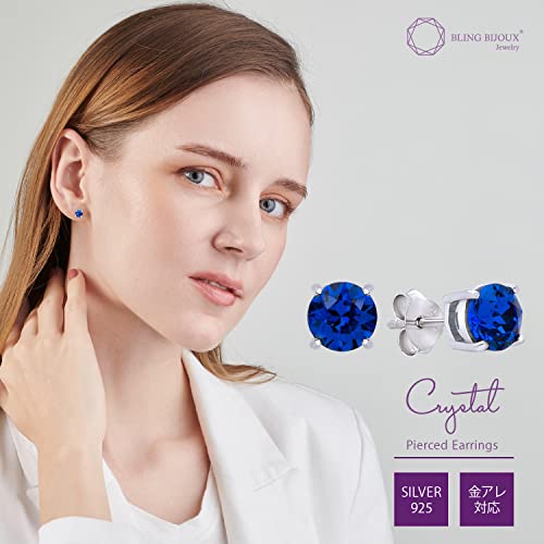 BLING BIJOUX Sterling Silver Rhodium-Plated Hypoallergenic round Shape with blue Cubic Zirconia earrings for Women
