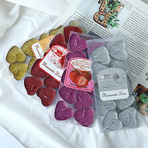 Bling Bling Bling - Candele a forma di cuore, 10 candele romantiche con 100 petali di rosa in seta, mini dischi per matrimoni, anniversari, compleanni, decorazione della casa, spa, relax (argento)