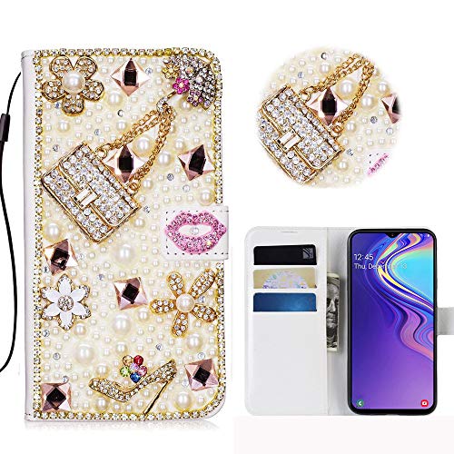 Bling Case Compatible Samsung Galaxy M20 Custodia 3D Handmade Luxury Women Case Wallet Leather Cover Brillantini Glitters Flip Caso in Pelle PU con Credit Card Slots Fold Stand Leather Cover - 6