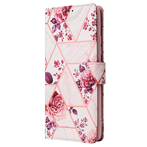 Bling Case per Samsung Galaxy A12 Custodia Marmo, Xifanzi Galaxy A12 Women Wallet Leather Cover Marmo Brillantini Glitters Flip Caso in Pelle con Credit Card Slots Fold Stand Leather Cover Rosa