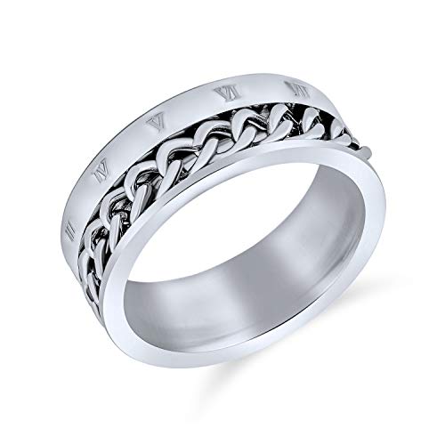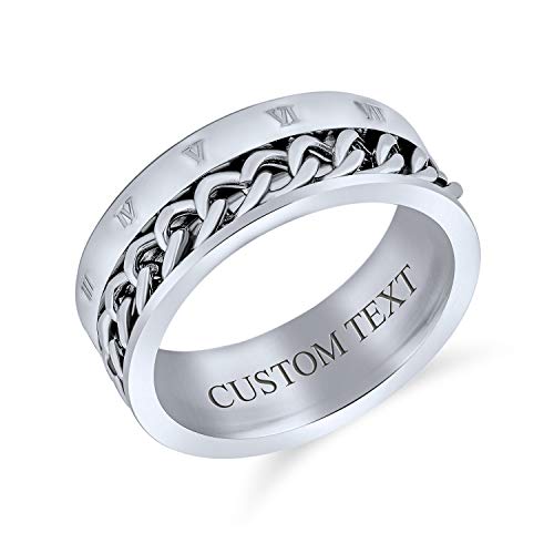 Bling Jewelry Anello Di Fidanzamento Personalizzato In Acciaio Inossidabile Color Argento Ossidato Con Catena Di Corda Da Motociclista E Numeri Dell'Atlante Per Uomo E Donna Largo 8Mm