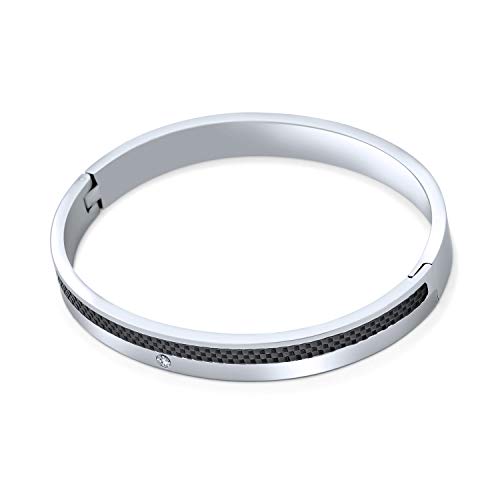 Bling Jewelry Bracciale Bracciale per Bracciale in Argento in Fibra di Carbonio CZ Personalizzato per Uomo in Acciaio Inossidabile Color Argento inciso su Misura
