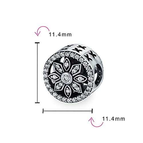 Bling Jewelry Cristallo Bianco Distanziatore Aperto Disco Rotondo Fiore Per Donne .925 Argento Adatto A Bracciale Europeo